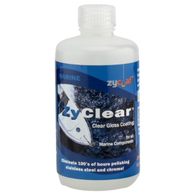 Sold outZyClear Marine High Gloss and Corrosion protecting clear coat is formulated for the rigorous marine environment on deck, below the water line and in the engine room. ZyClear clear coat reduces the hundreds of hours spent by deck hands polishing and re-polishing stain less steel, chrome and other metal. railings, ladders, and trim. Reapplication may be necessary every 120 days.